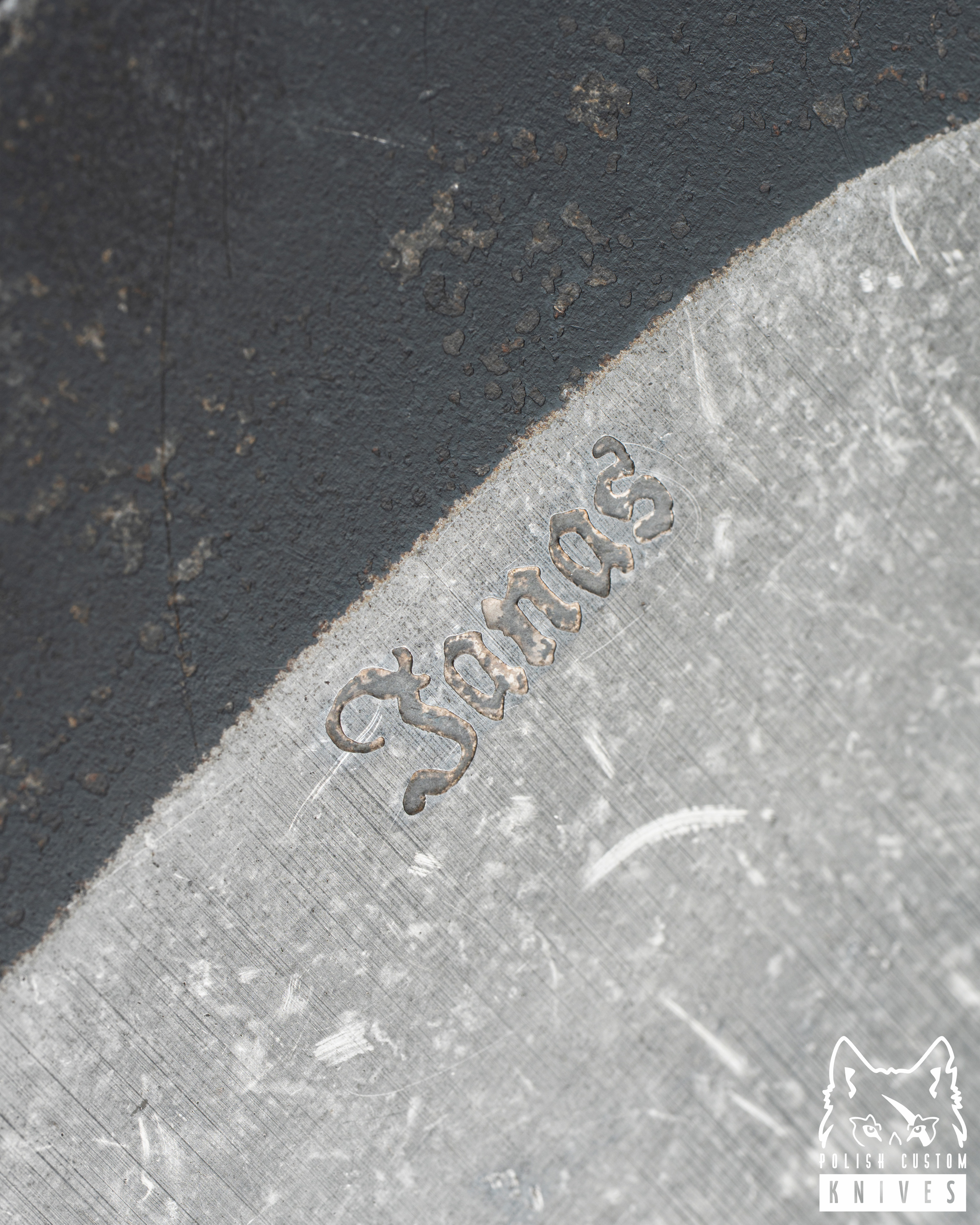 Ostrze: Stal sprężynowa 50HF, trawiona w chlorku żelaza,