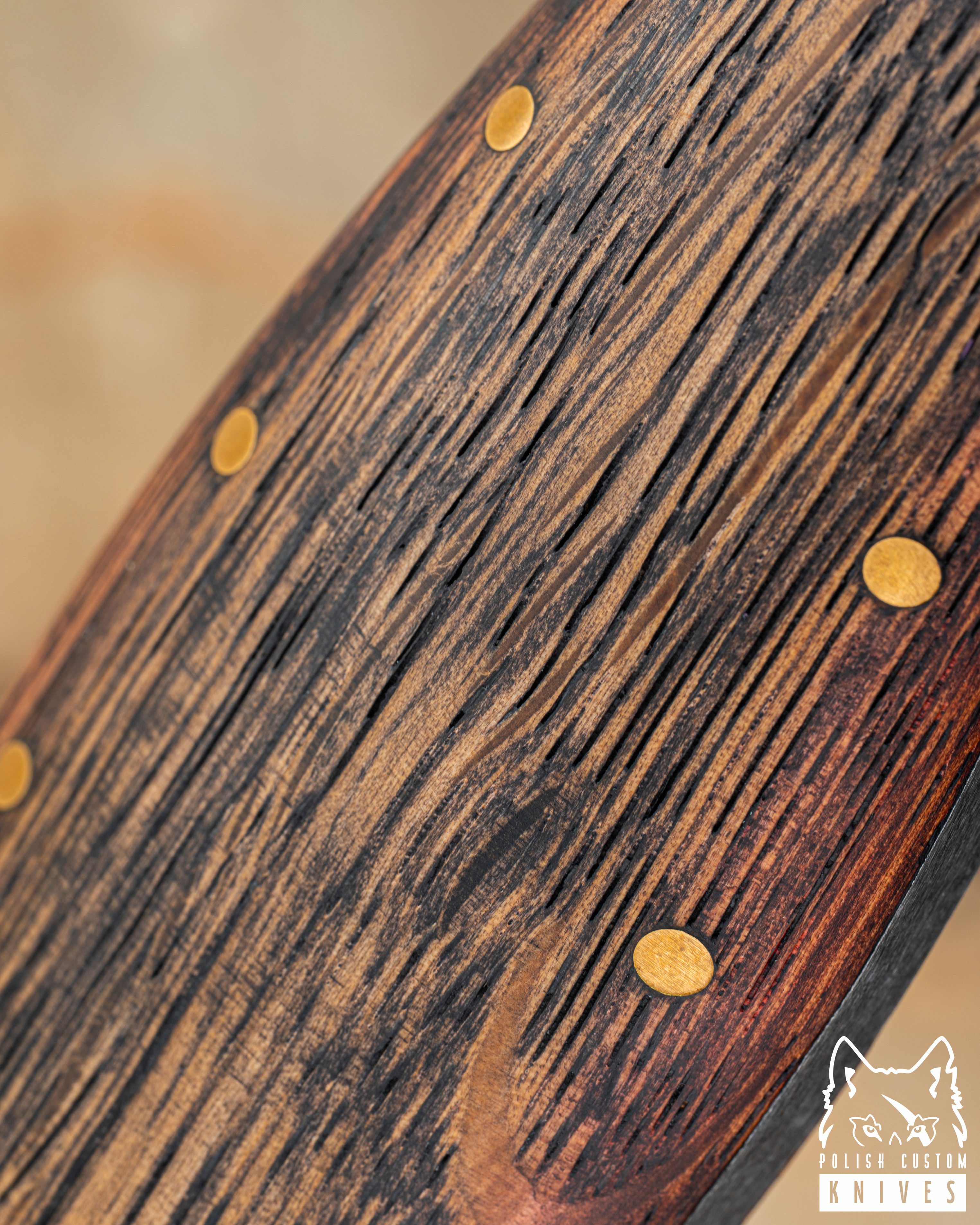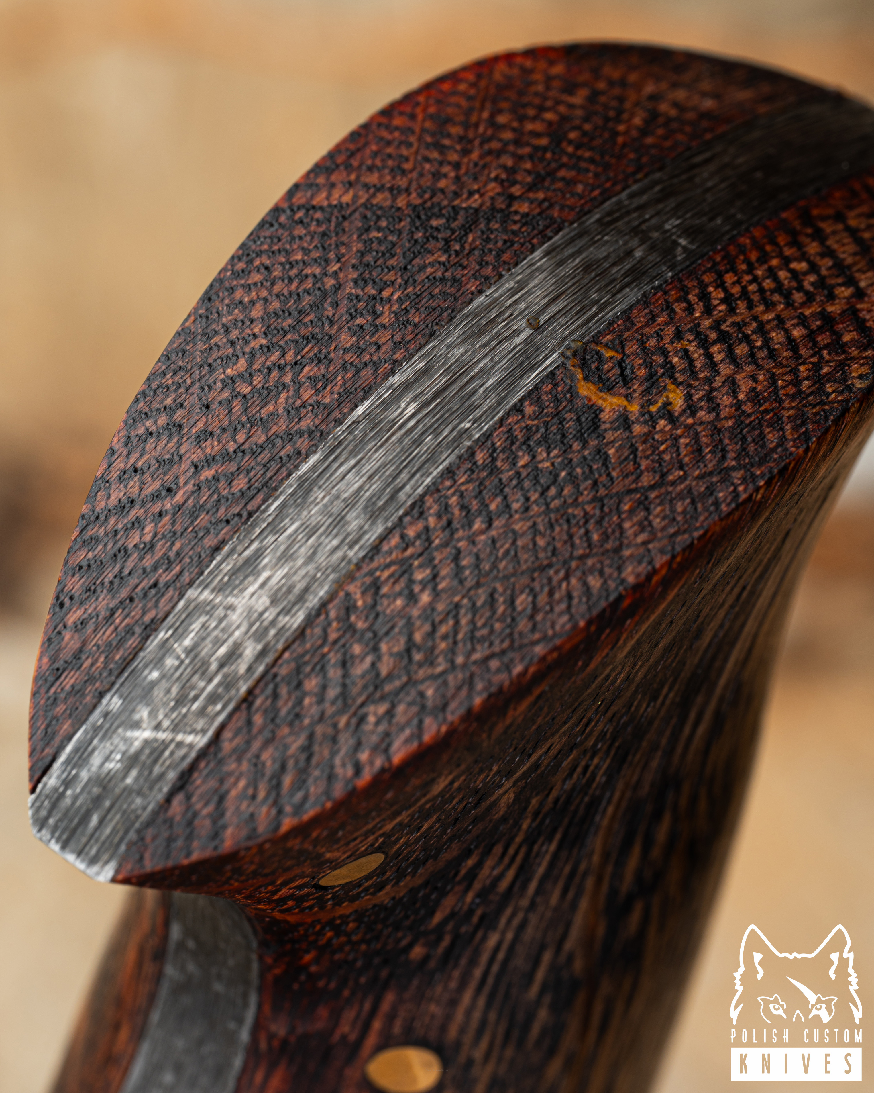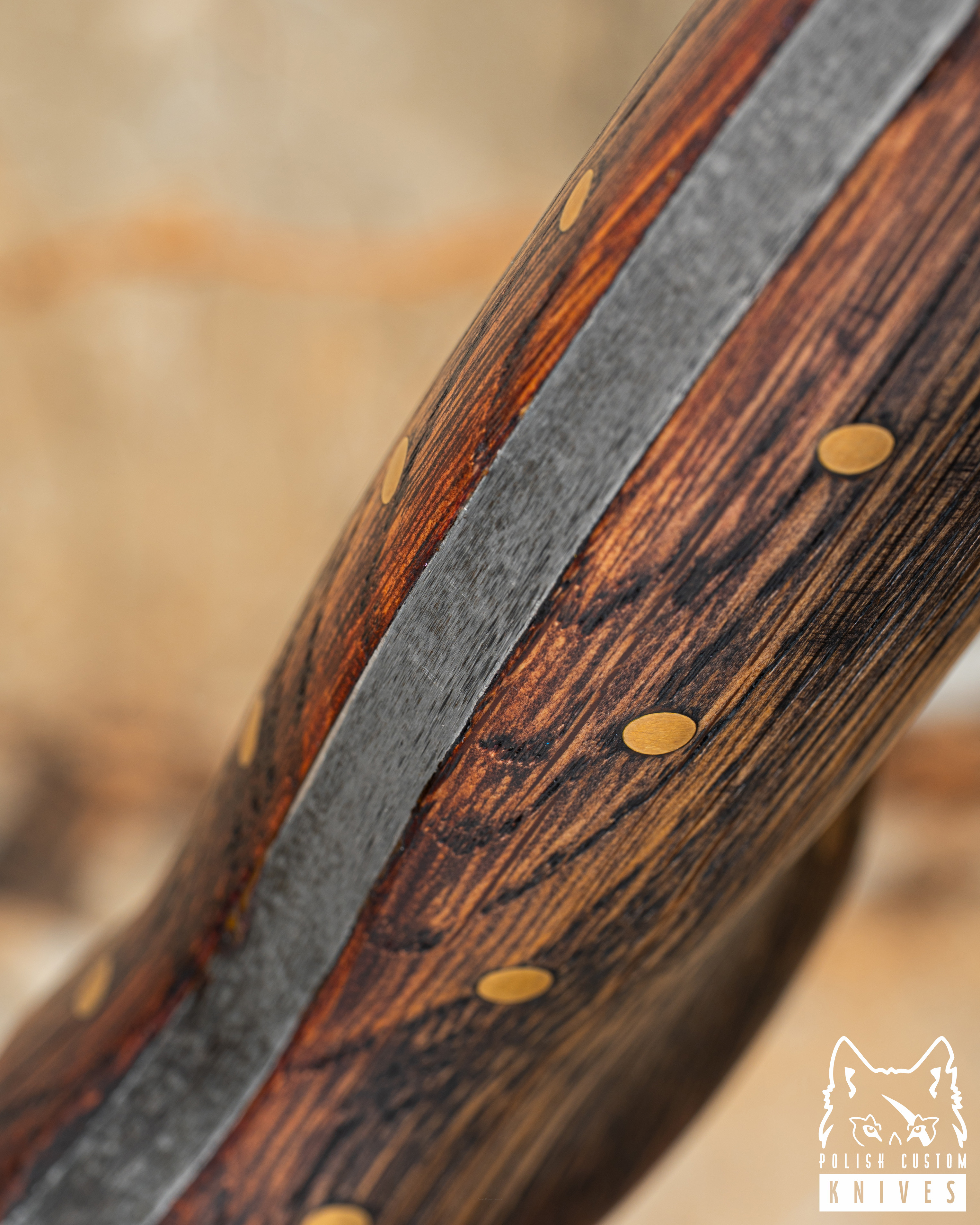 Rękojeść: Dąb barwiony, mosiądz