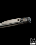 Kolejną unikalną cechą, która wyróżnia naszą Epikę na tle długopisów dostępnych na rynku jest stworzenie jednolitego, konturowanego korpusu wykonanego z tytanu Grade 5. Nie posiada on żadnych łączeń i jest bardzo ergonomiczny. W celu uzyskania tego efektu, podjęliśmy decyzję o zakupie automatu tokarskiego typu szwajcarskiego i okazało się, że pomimo tak zaawansowanej maszyny wykonanie tak długiego, litego, korpusu z tytanu to kolejne bardzo poważne wyzwanie, któremu na szczęście udało się sprostać.