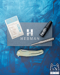 Nowe oryginalne pudełko wraz ze ściereczką oraz olejkiem Pruciak Protector Glide for Herman wraz z dedykowanym śrubokrętem z tytanu produkowanym przez Herman Knives.