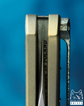 grubość 3,3 mm (0.1299"), twardość 63-64 HRC, stal hartowana z głębokim wymrażaniem w ciekłym azocie, Średnio twardy detent,
