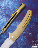 Ergonomicznie zaprojektowane rękojeści tych noży gwarantują wygodę i pewność chwytu, co jest idealnie uzupełnione przez zastosowanie zaawansowanych materiałów. Wysokiej jakości stali, takie jak M390 i M398 od Bohler, CPM MagnaCut, Damasteel RWL34, stal damasceńska oraz Damax od Alleima, łączą niezawodność i trwałość z estetyczną doskonałością.