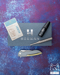Nowe oryginalne pudełko wraz ze ściereczką oraz olejkiem Pruciak Protector Glide for Herman wraz z dedykowanym śrubokrętem z tytanu produkowanym przez Herman Knives.
