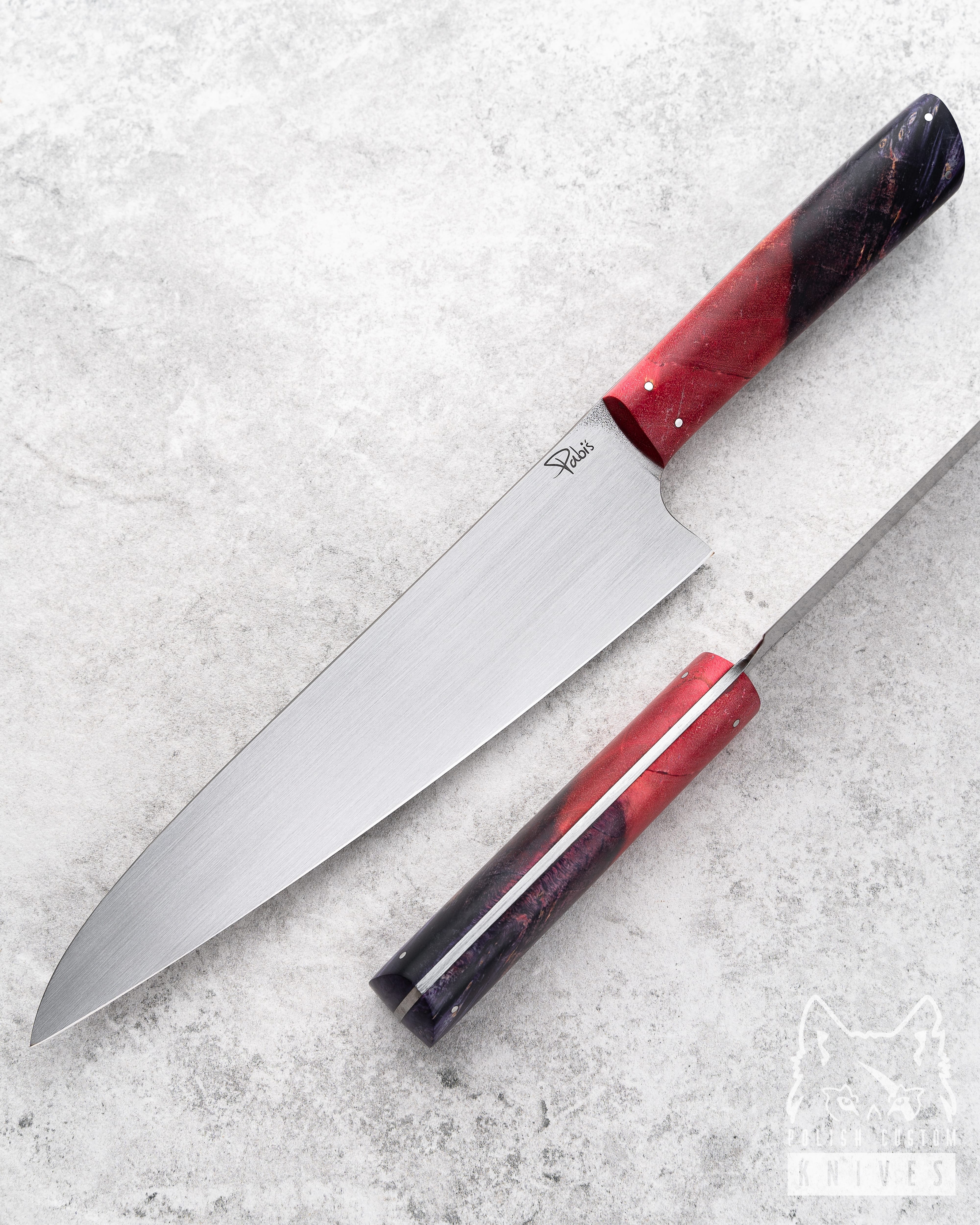 Noże pod logiem Pabiś to dzieło 18 letniego chłopaka, który stara się realizować swoją pasję. Nożami zajmuję się od około dwóch lat , początkowo próbowałem tworzyć noże myśliwskie i bushcraftowe ale odkryłem, że moim powołaniem są noże kuchenne. Właśnie dlatego od roku produkuję ręcznie robione noże kuchenne.