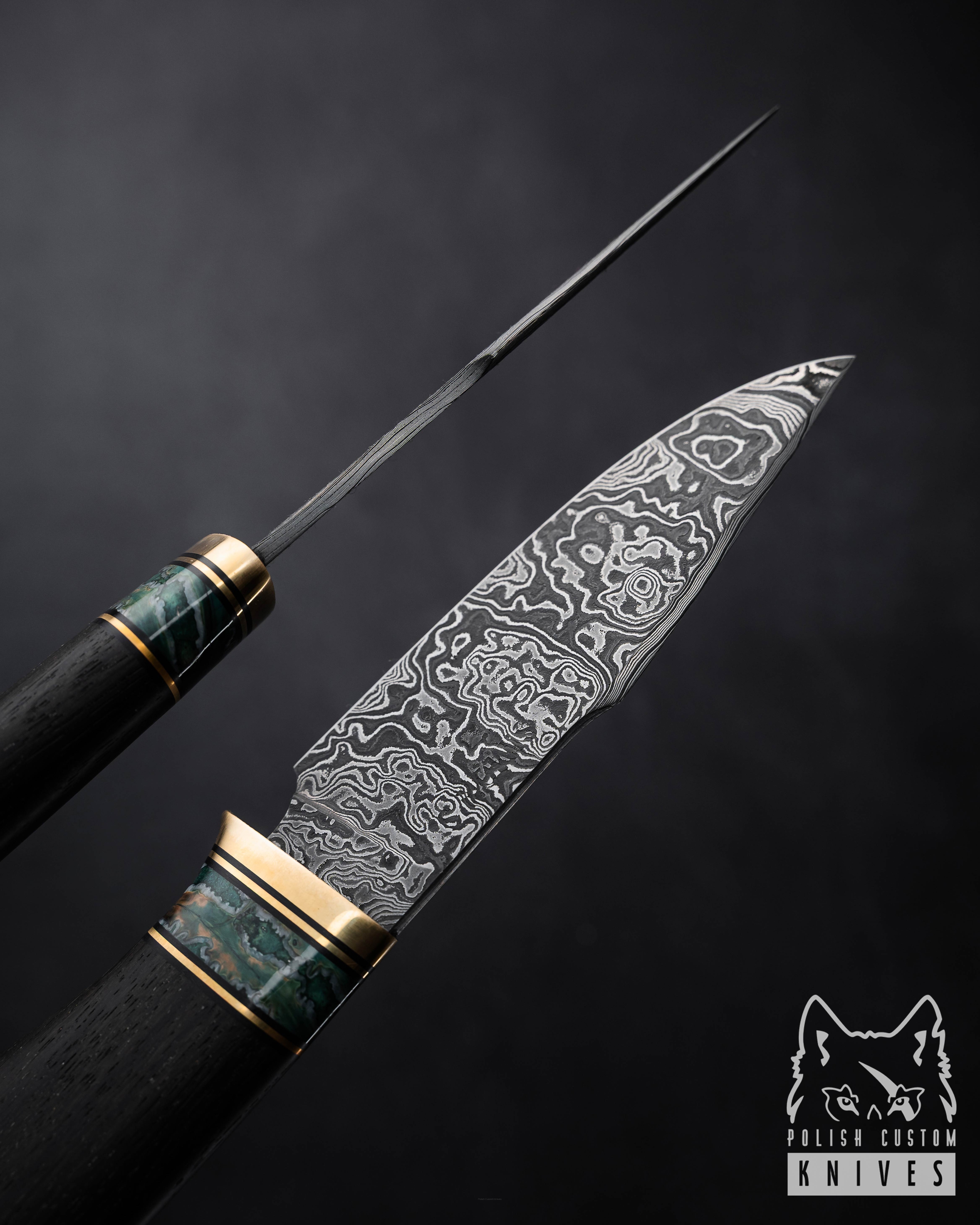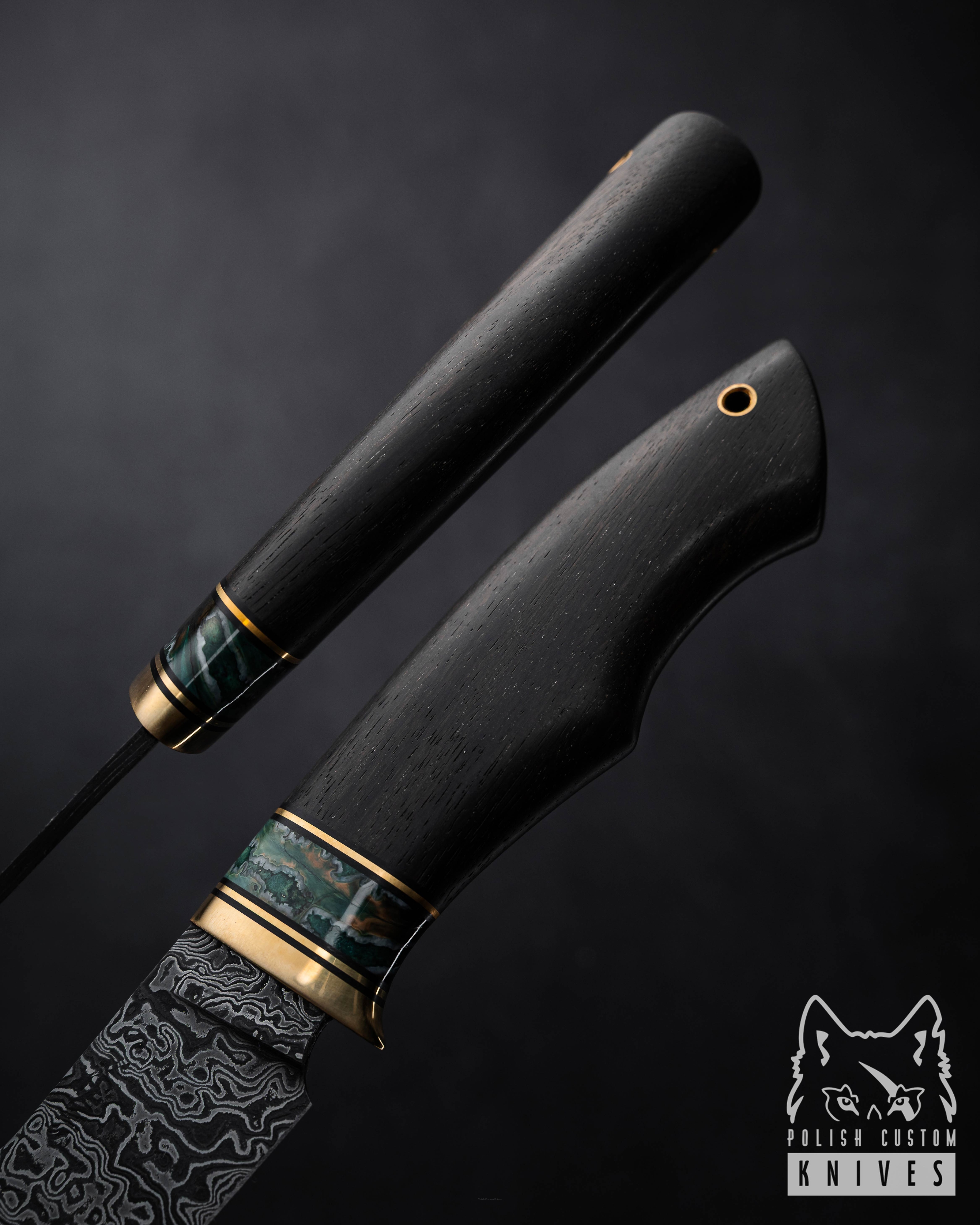 Rękojeść: Czarny Dąb, Hybryda klonowa, Ząb Mamuta, Mosiądz, Micarta