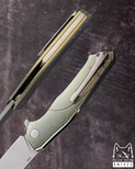 Co ważne, "Bee" łączy w sobie zaawansowane materiały z mistrzowskim rzemiosłem. Wysokiej jakości stale, takie jak M390 i M398 od Bohler, CPM MagnaCut, Damasteel RWL34, stal damasceńska oraz Damax od Alleima, łączą niezawodność i trwałość z estetyczną doskonałością. Każdy nóż z tej serii to przykład wyśmienitego wykonania, oferując użytkownikom zarówno wygodę, jak i pewność chwytu.