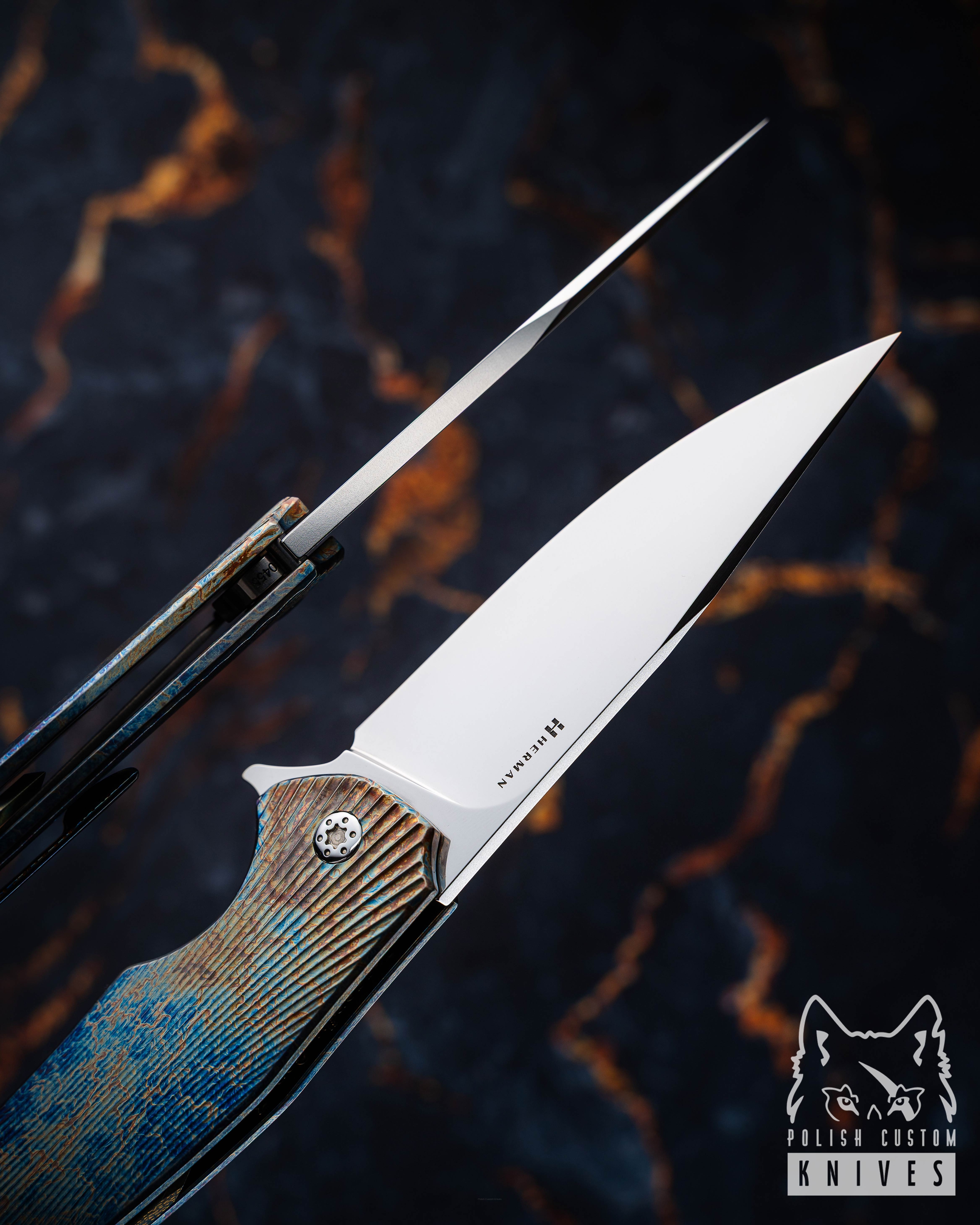 Śrubki wykonane są ze stali nierdzewnej, hartowanej próżniowo. Wszystkie trzy elementy są produkowane w Herman Knives na naszym automacie wzdłużnym typu szwajcarskiego.
