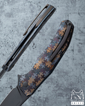 Ergonomicznie zaprojektowane rękojeści tych noży gwarantują wygodę i pewność chwytu, co jest idealnie uzupełnione przez zastosowanie zaawansowanych materiałów. Wysokiej jakości stali, takie jak M390 i M398 od Bohler, CPM MagnaCut, Damasteel RWL34, stal damasceńska oraz Damax od Alleima, łączą niezawodność i trwałość z estetyczną doskonałością.