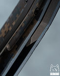Ostrze: Stal nierdzewna proszkowa CPM MagnaCut , grubość 3,3 mm (0.1299"), stal hartowana z głębokim wymrażaniem w ciekłym azocie, twardość 63-64 HRC, Średnio twardy detent, Szlif płaski