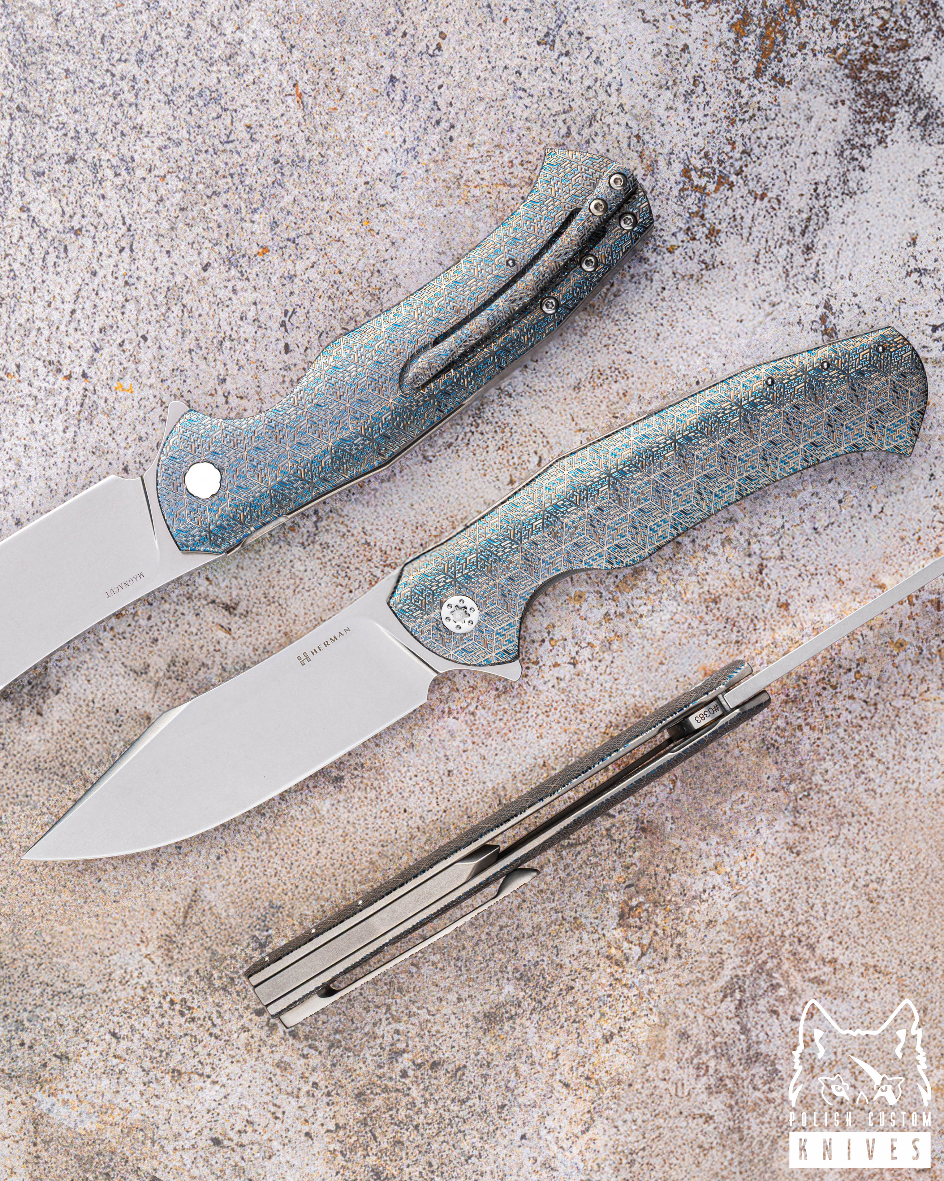 Śrubki wykonane są ze stali nierdzewnej, hartowanej próżniowo. Wszystkie trzy elementy są produkowane w Herman Knives na naszym automacie wzdłużnym typu szwajcarskiego.