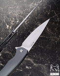 grubość 3,3 mm (0.1299"), stal hartowana z głębokim wymrażaniem w ciekłym azocie, twardość 63-64 HRC, Średnio twardy detent, Szlif wklęsły o dużym promieniu