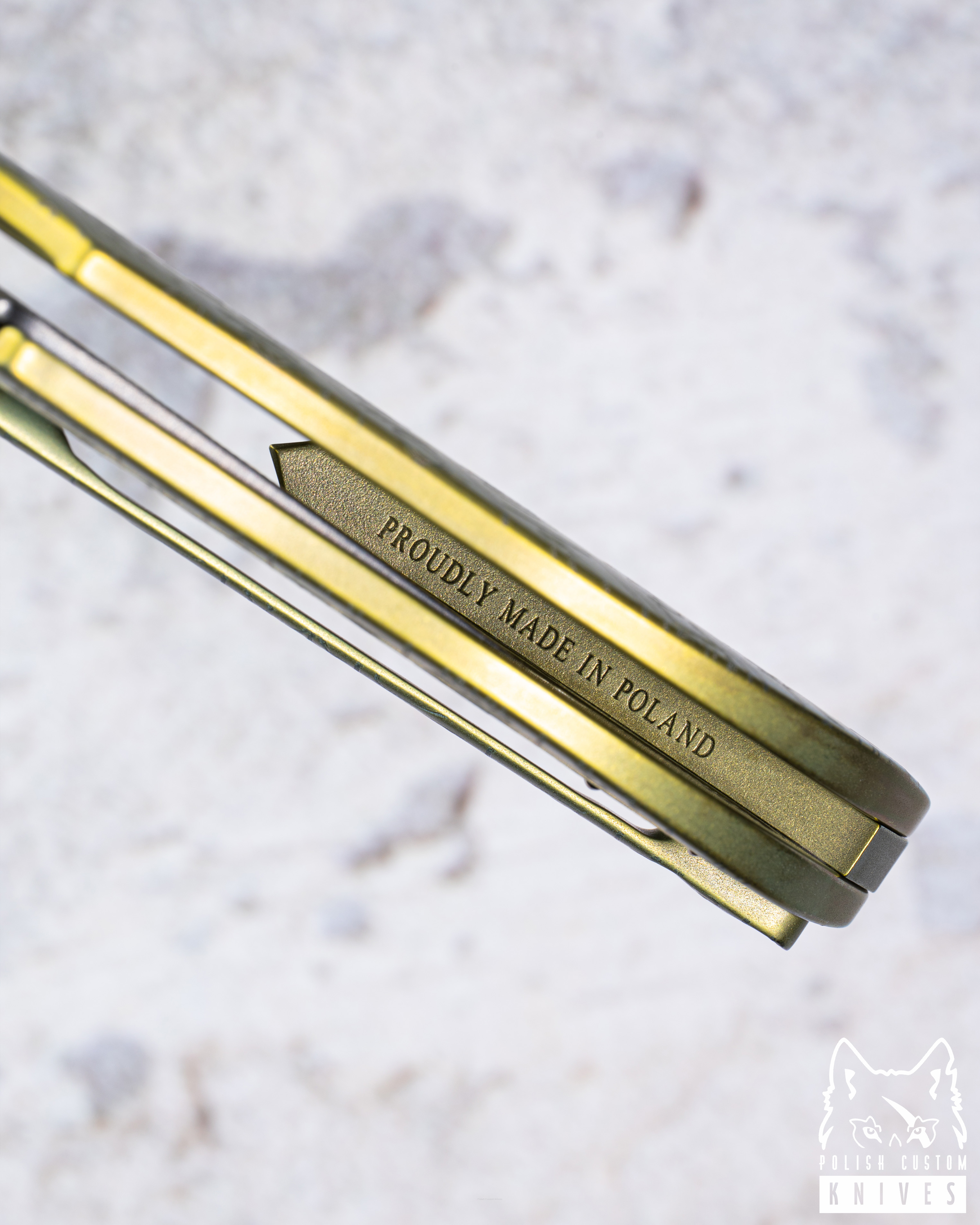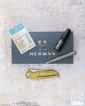 Nowe oryginalne pudełko wraz ze ściereczką oraz olejkiem Pruciak Protector Glide for Herman wraz z dedykowanym śrubokrętem z tytanu produkowanym przez Herman Knives.