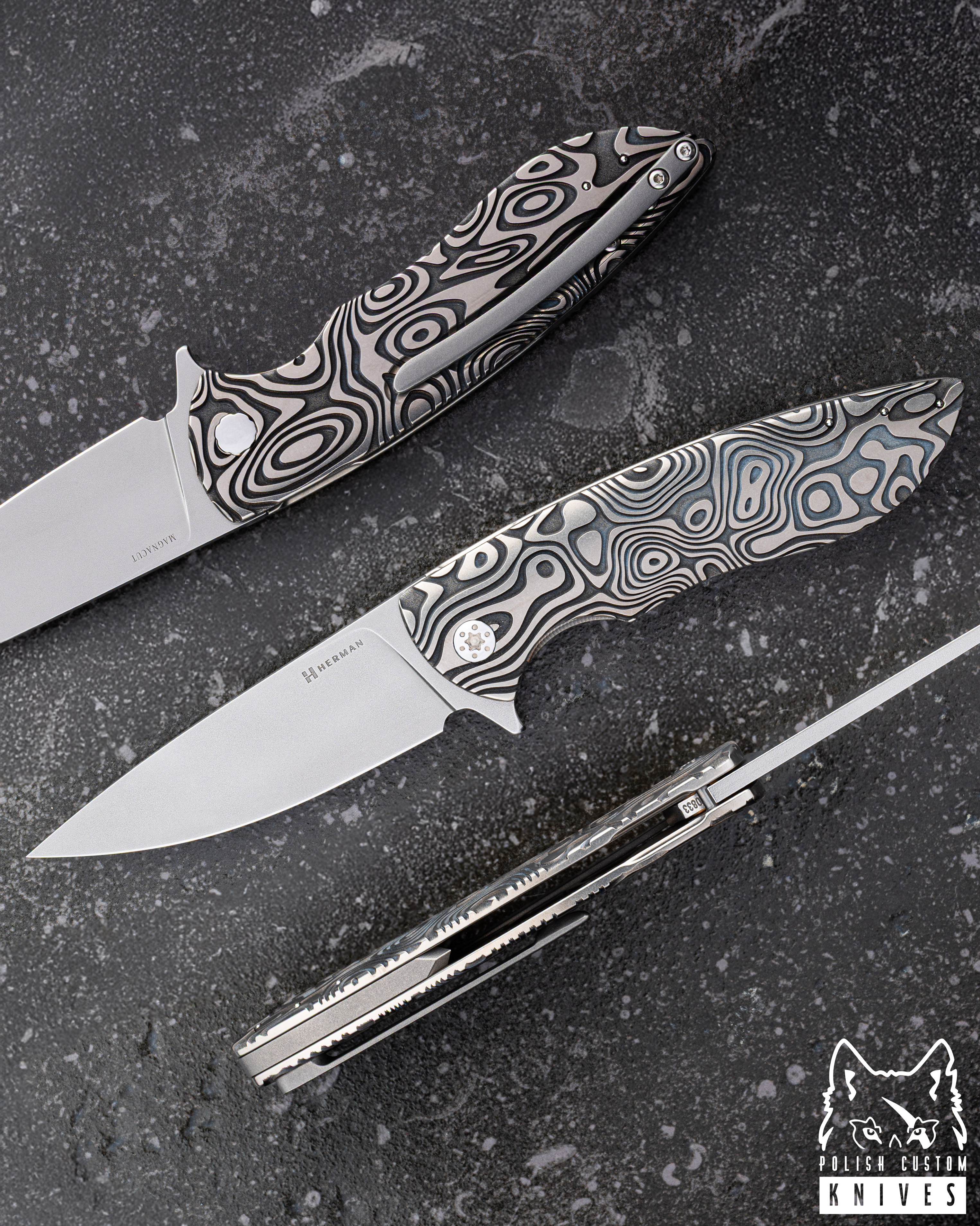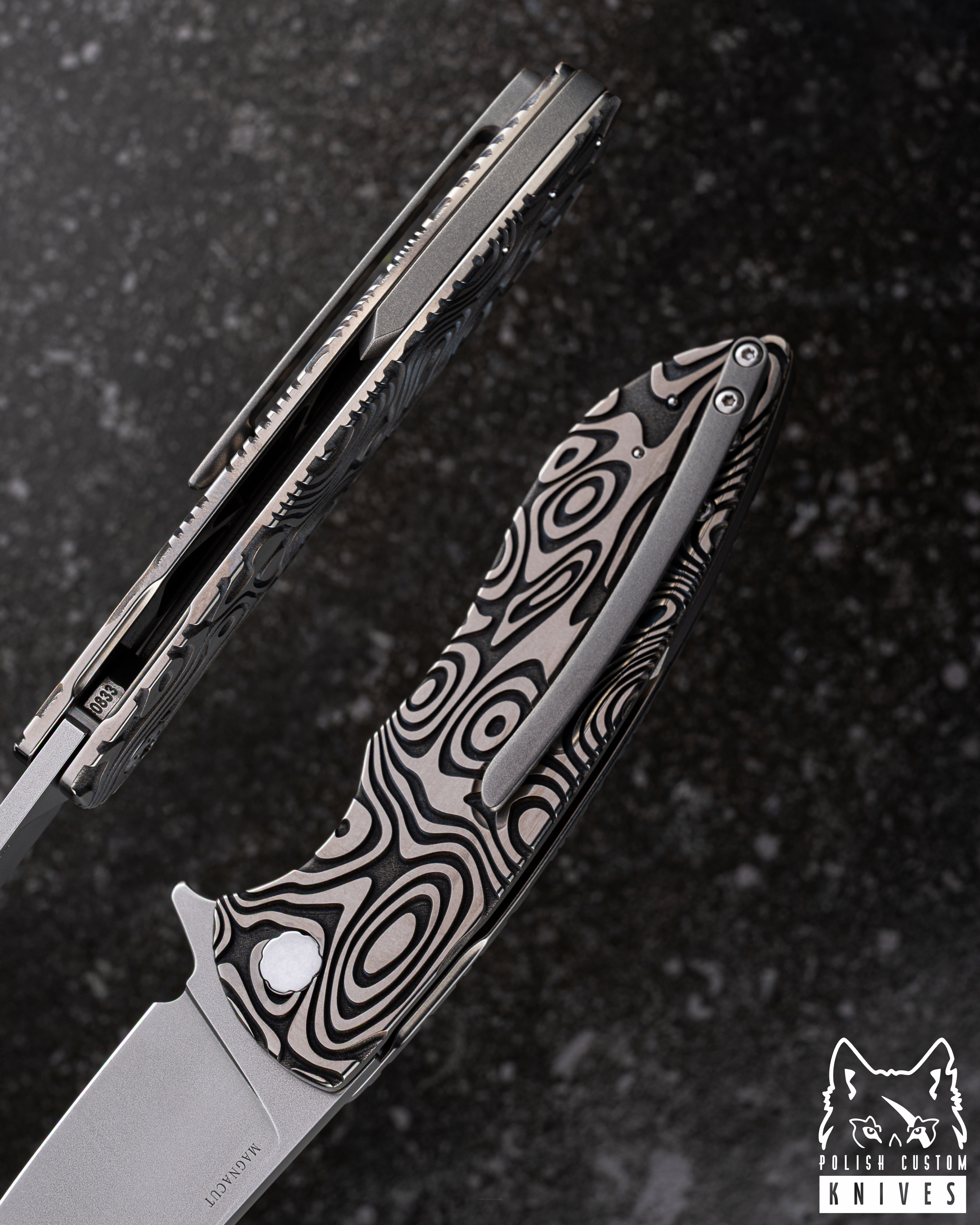 Rękojeść: Tytan Grade 5 ( Wzór: Nebula Ripple - Głęboko grawerowany)