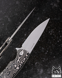 W serii Sting wykorzystano różne rodzaje wysokiej jakości stali, takie jak M390, M398 od Bohler, CPM MagnaCut, Damasteel RWL34, stal damasceńska od tego samego renomowanego szwedzkiego producenta, a także Damax od Alleima, innego znanego szwedzkiego producenta. Te materiały gwarantują nie tylko atrakcyjny wygląd, ale również wytrzymałość i niezawodność w codziennym użytkowaniu.