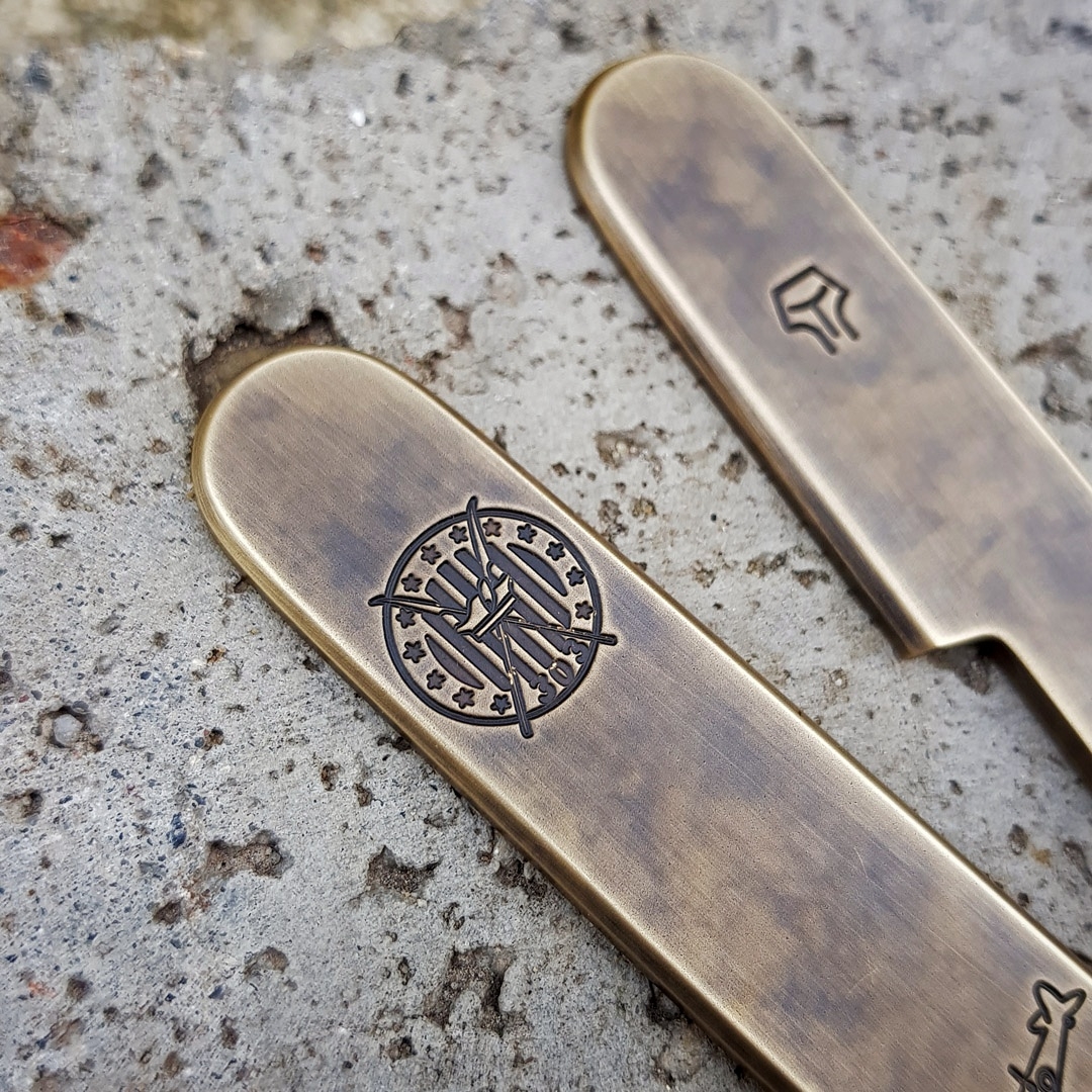 Uwaga na temat materiałów: Mosiądź jest metalem o mniejszej twardości niż tytan. Miedź jest materiałem o mniejszej twardości niż mosiądźi i materiałem o dużo mniejszej twardości niż tytan. Miedź i mosiądź, w odróżnieniu od sprężystego tytanu, odkształcają się w sposób plastyczny,dlatego nie nadają się do wykonywania narzędzi z funkcją podważania itp. Kolor miedzi i mosiądzu zmienia się z czasem w wyniku procesu patynowania.