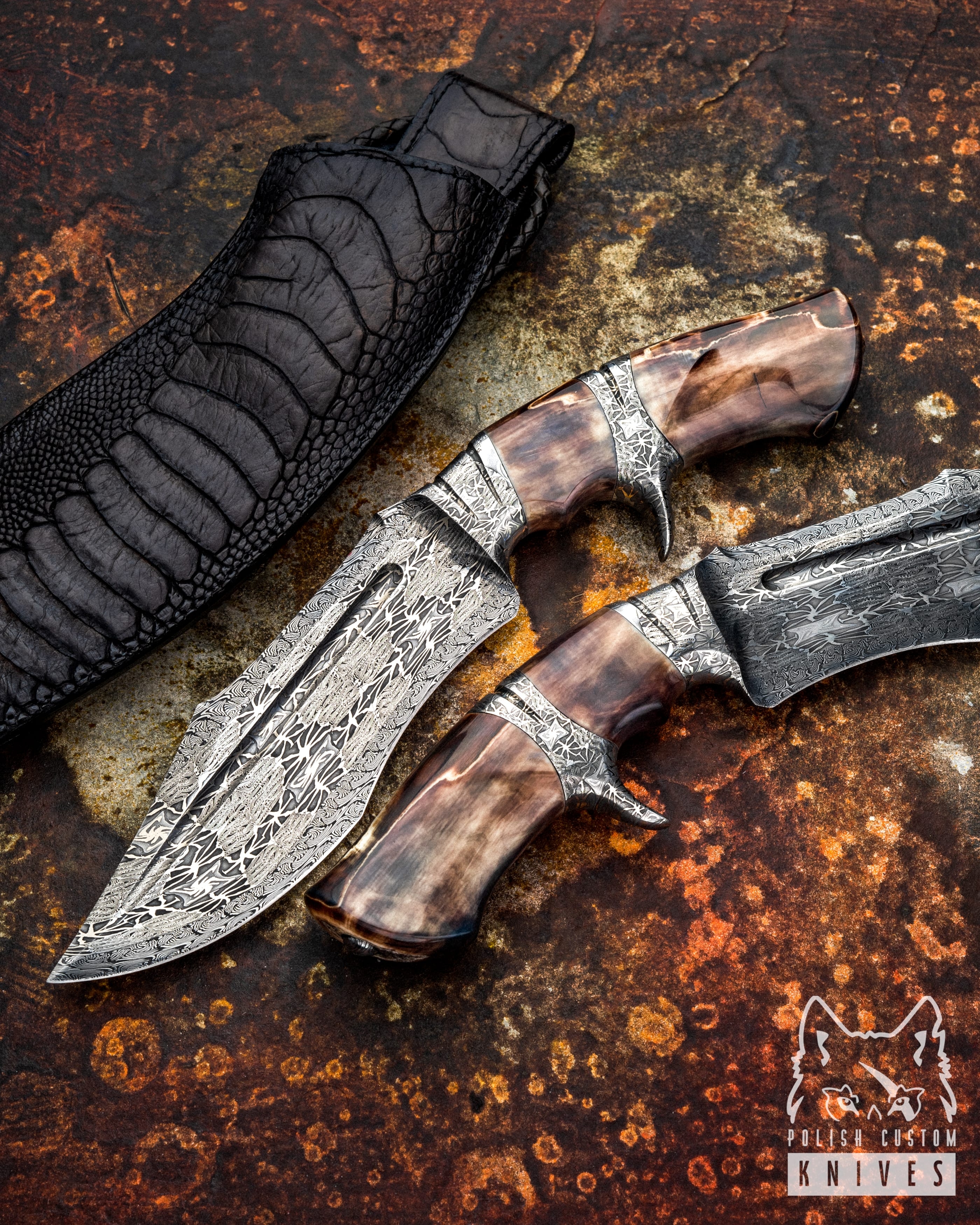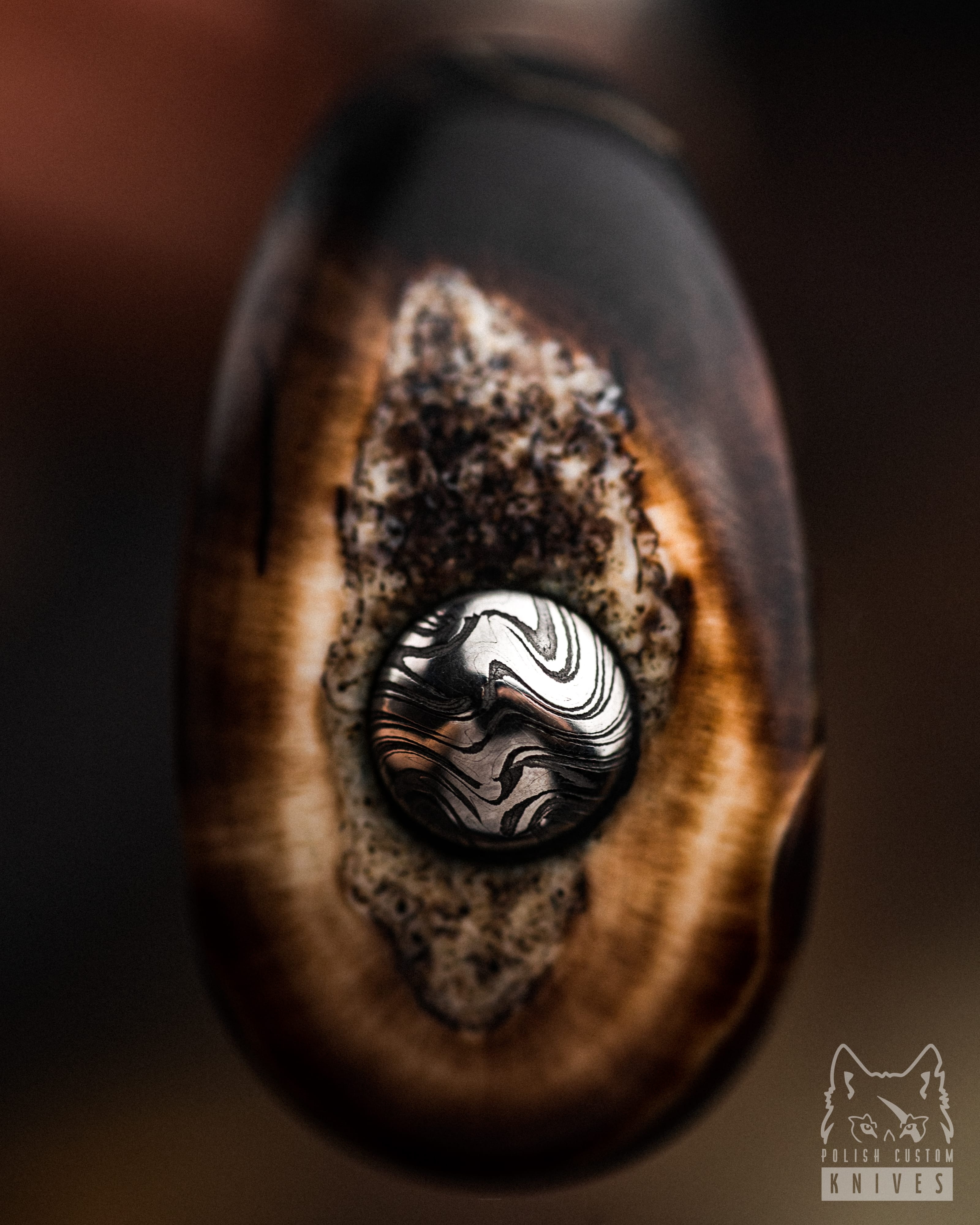 Rękojeść: Kieł Morsa Fossil, Damast Mozaikowy